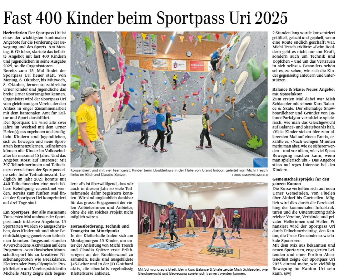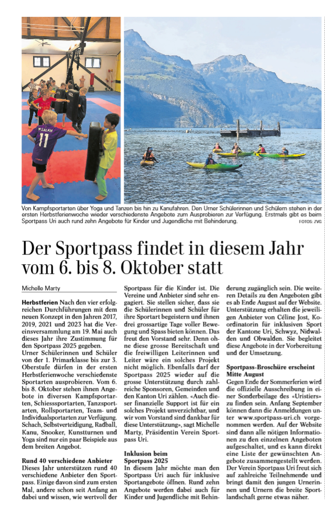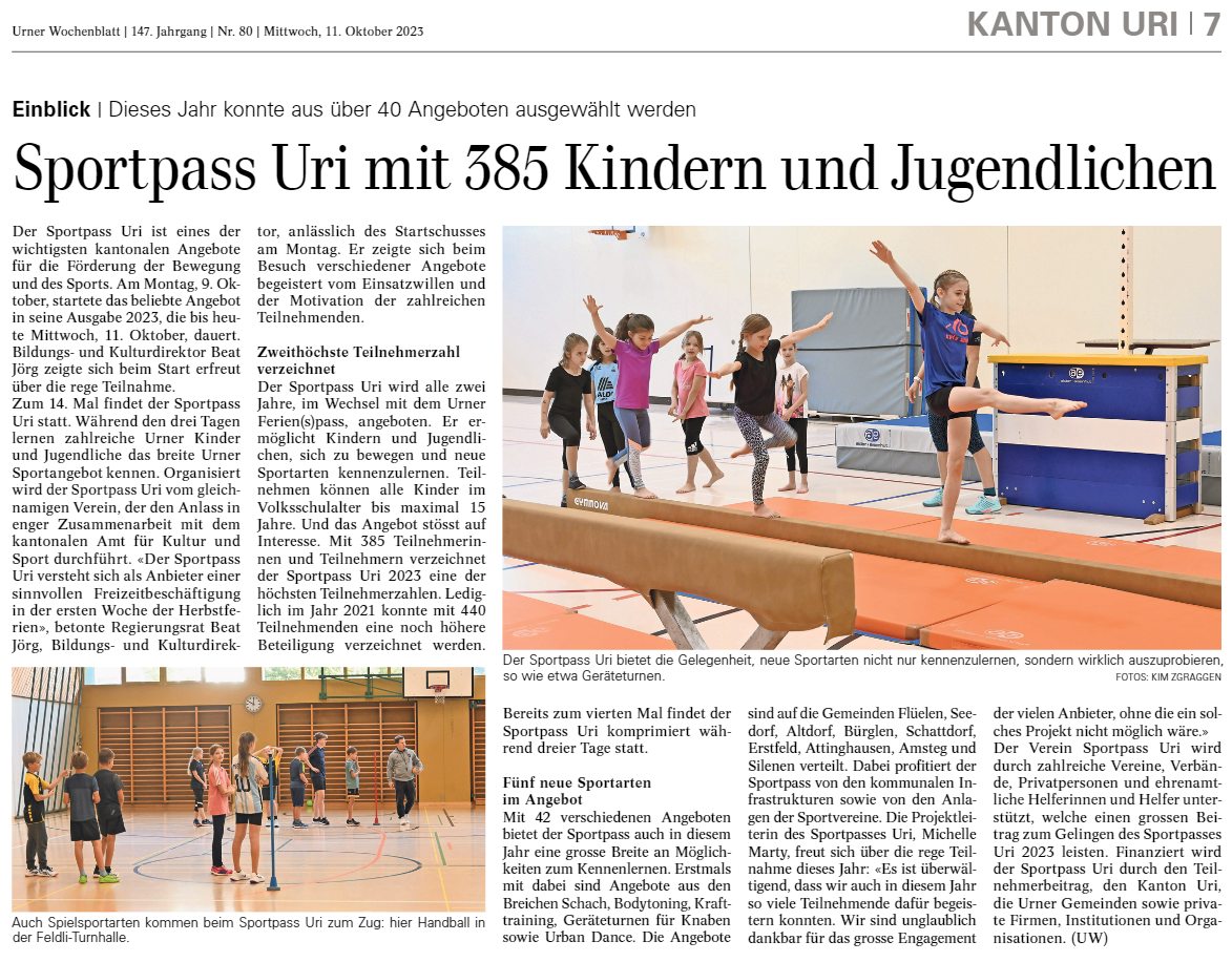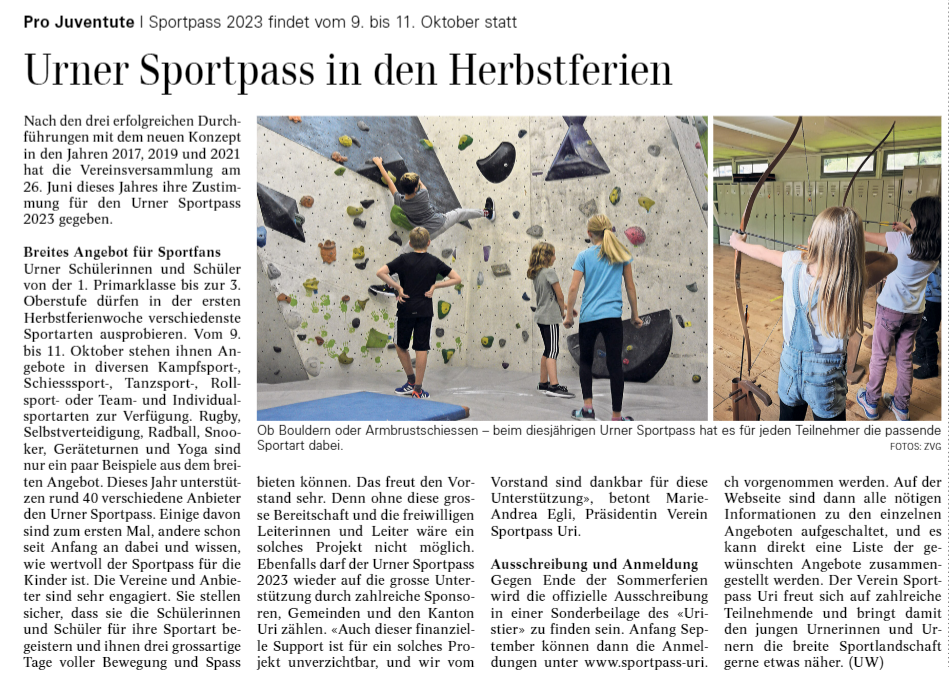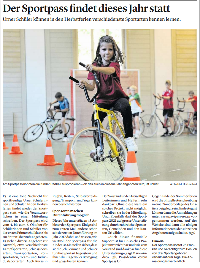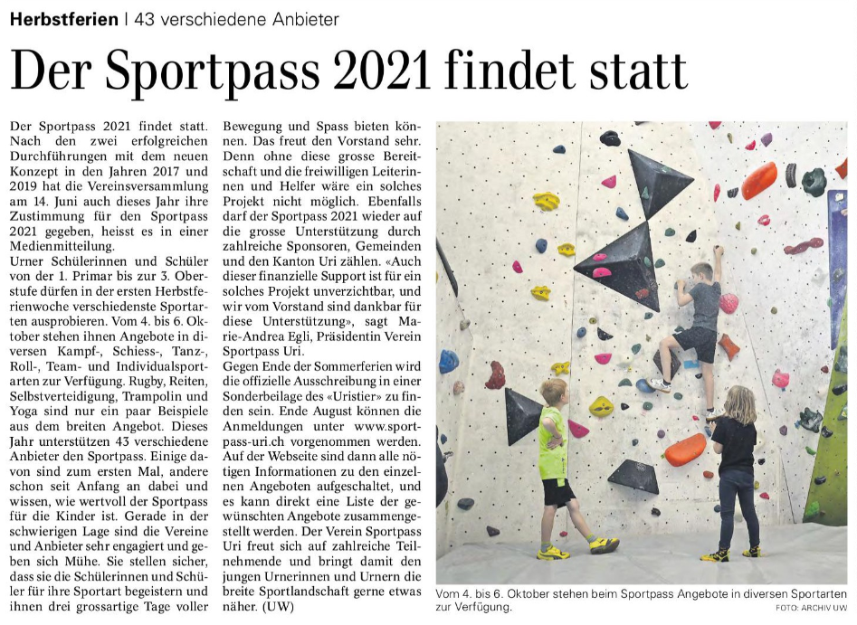 Hier finden Sie alle Artikel und Berichterstattungen zum Sportpass Uri.