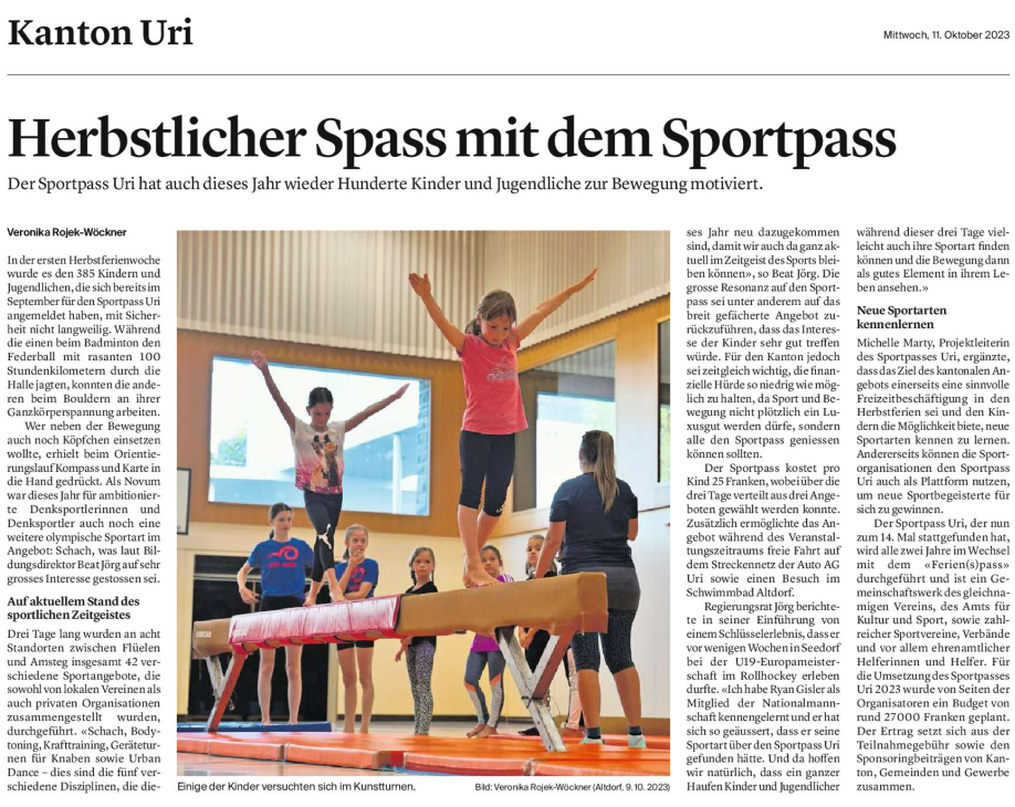 Bericht Urner Zeitung 11. Oktober 2023