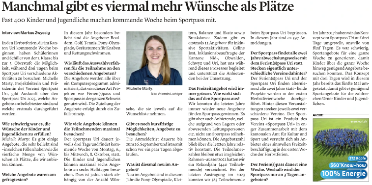 Vorbericht Urner Zeitung 1. Juli 2021